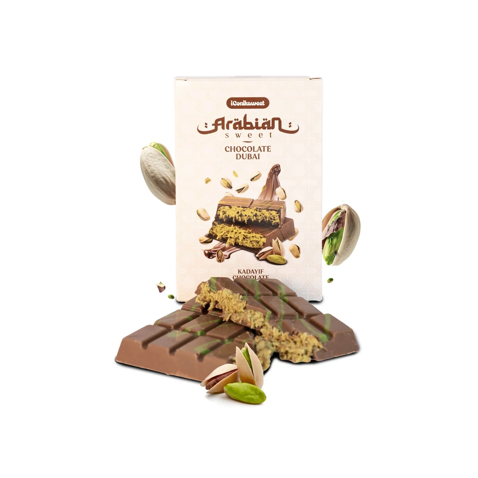 iConiksweet – ArabianSweet - Tablette de Chocolat Dubai - Kayadif Chocolat & Pistache – 12 x 100g